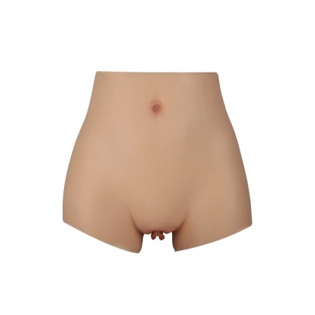Le faux vagin recouvre et moule la zone du bassin (ventre, fesses, et haut des cuisses) à la manière d'un boxer, avec effet rehausseur des fesses.