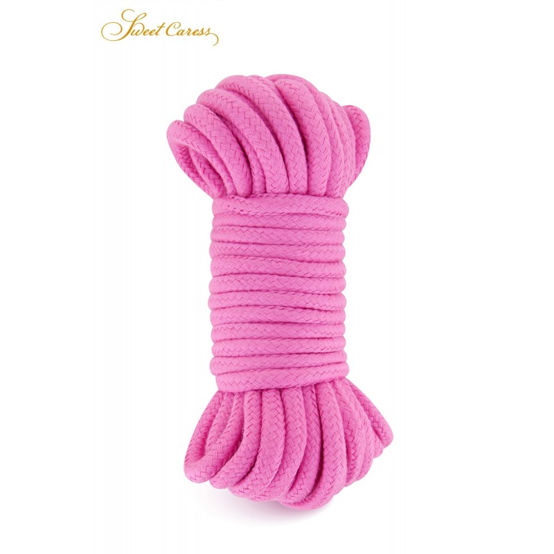 Corde de bondage en coton rose, longueur 10 mètres, pour la pratique des jeux BDSM et du shibari, par Sweet Caress.