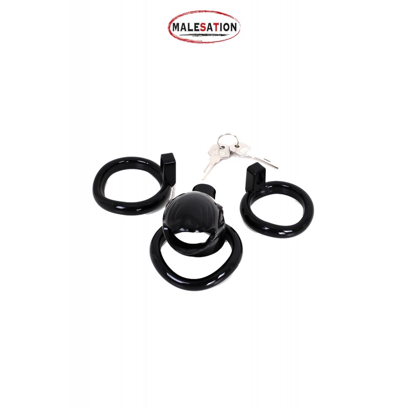 La marque Malesation, spécialiste des accessoires érotiques pour hommes, propose cette cage de chasteté légère de haute qualité fabriquée en ABS noir.