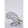 Cage de chasteté de haute qualité en métal chromé, avec véritable serrure et cadenas, longueur 11,5 cm, poids 100 g.