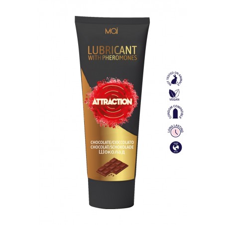 Conçu en Espagne par les laboratoires Mai Cosmetics, Végan et eco friendly, non testé sur les animaux, sans parabène ni phtalates, le lubrifiant aux phéromones Attraction parfum chocolat est un produit intime qui respecte la planète et ses habitants.